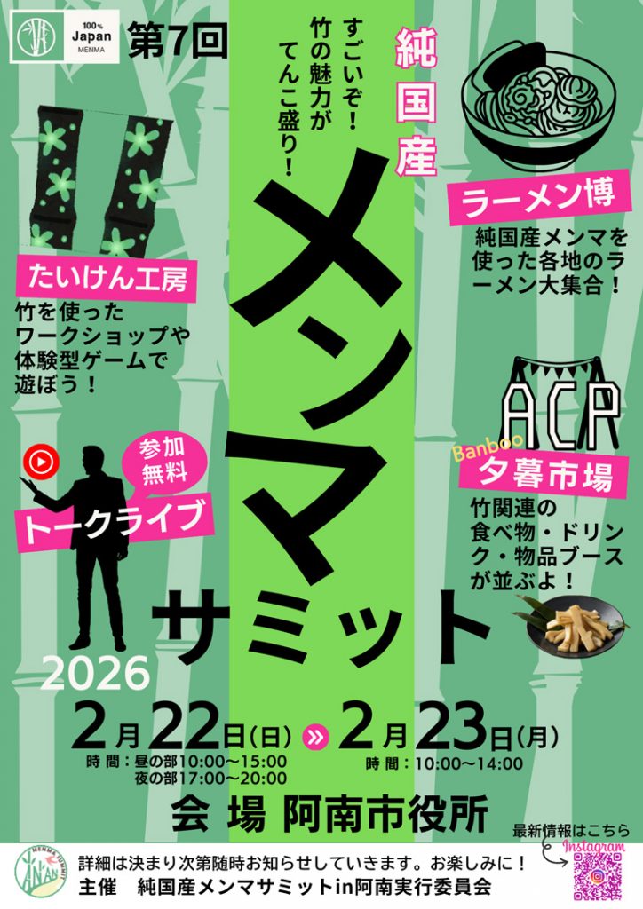 純国産メンマプロジェクトによって開催される大会で、2017年純国産メンマサミットin京都から始まり、今年度で第7回目となります。