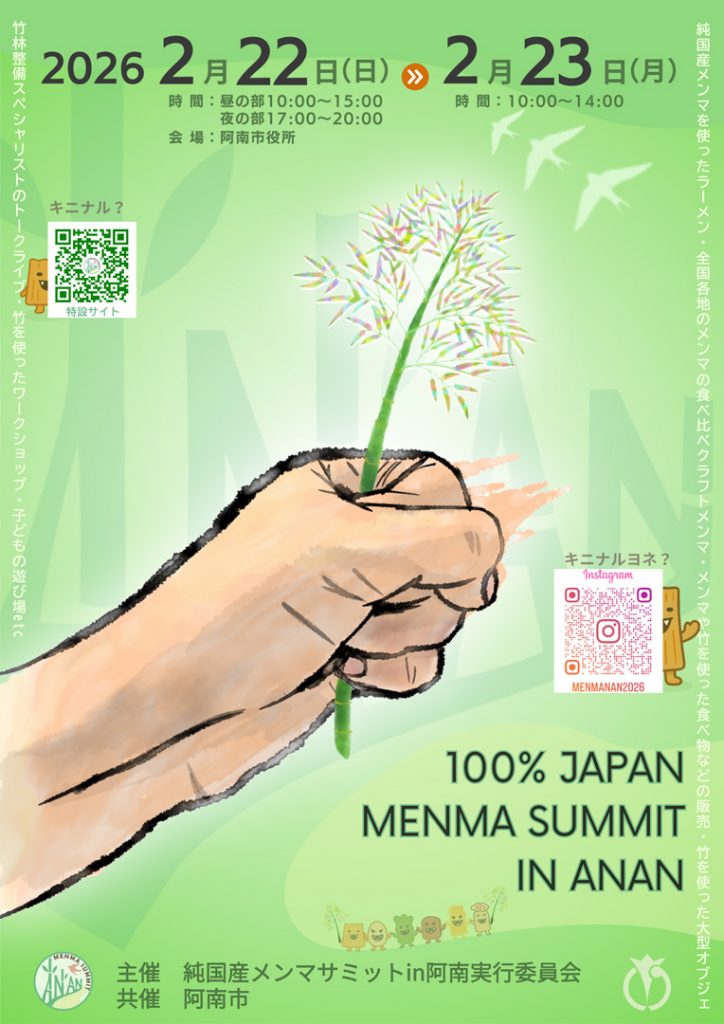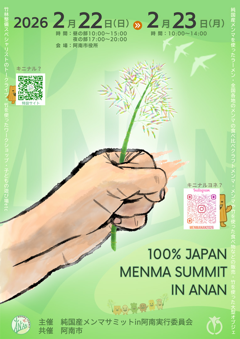 何と令和8年度は四国ブロック徳島県阿南市が会場に選ばれました。阿南市では以前から竹を活用したイベント【活竹祭(かっちくさい)】が開催されています。活竹祭の時期に合わせて開催することで、竹の産地である阿南市を、より皆様に楽しんでいただけるものと考えています。