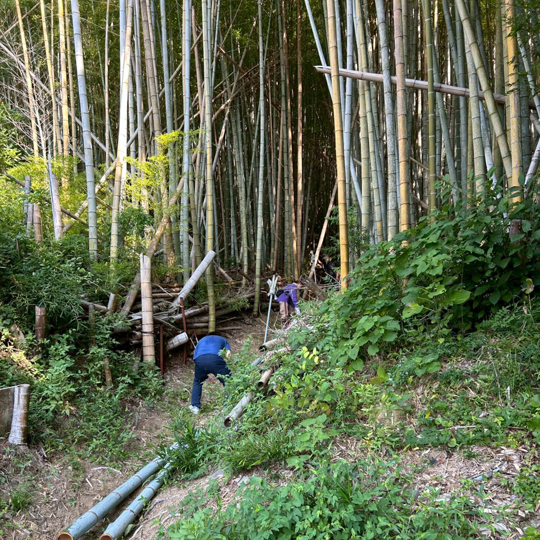 【創】チームの竹材料確保もかねて、実際に竹林に入り、竹を切らせていただきました!切るだけでも大変でしたが、その後の竹を倒すのがとっっっても大変💦