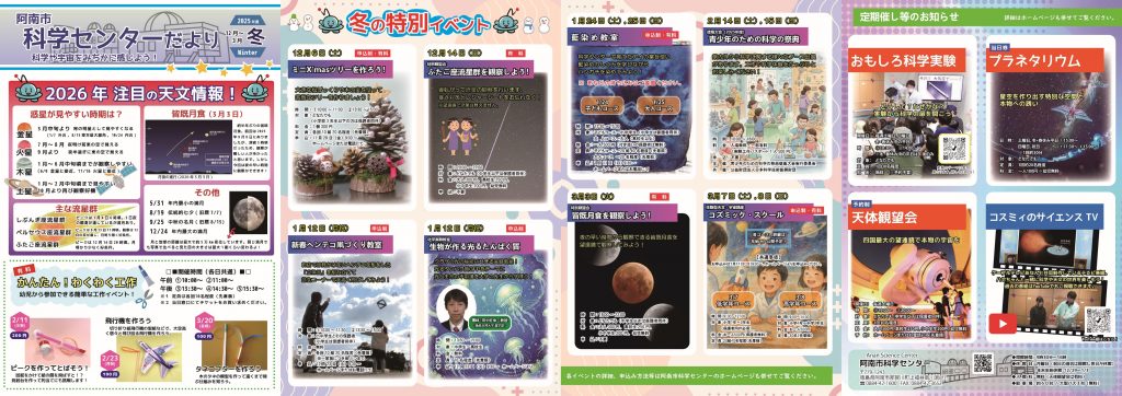 阿南市科学センターでは、季節ごとにイベント情報などをまとめた季刊誌を発行しています。以下、最新号とバックナンバーを PDF でご覧いただけます(※バックナンバーは随時整理中)。